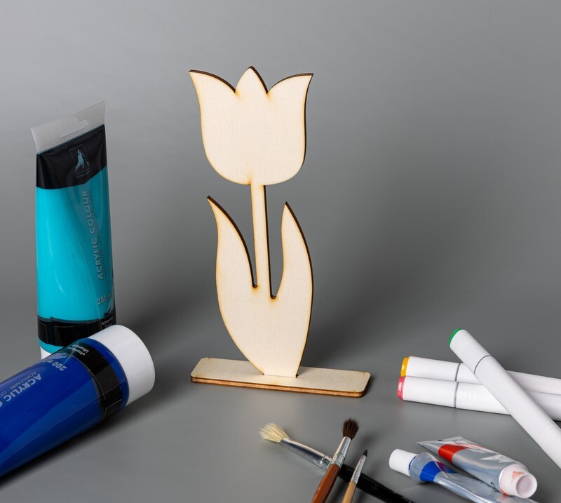 Drevený tulipán na stojane vhodný ako ozdoba počas prichádzajúcej jari alebo Veľkej noci. Môže skrášliť váš domov, školu alebo škôlku.