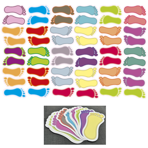 Samolepky sú navrhnuté v výrazných farbách, aby zaujali deti, zároveň podporujú vnímanie farieb a priestorovú orientáciu. Sú určené na lepenie na hladké vnútorné podlahy a pri správnej aplikácii vydržia dlhodobú bežnú záťaž detskej chôdze.